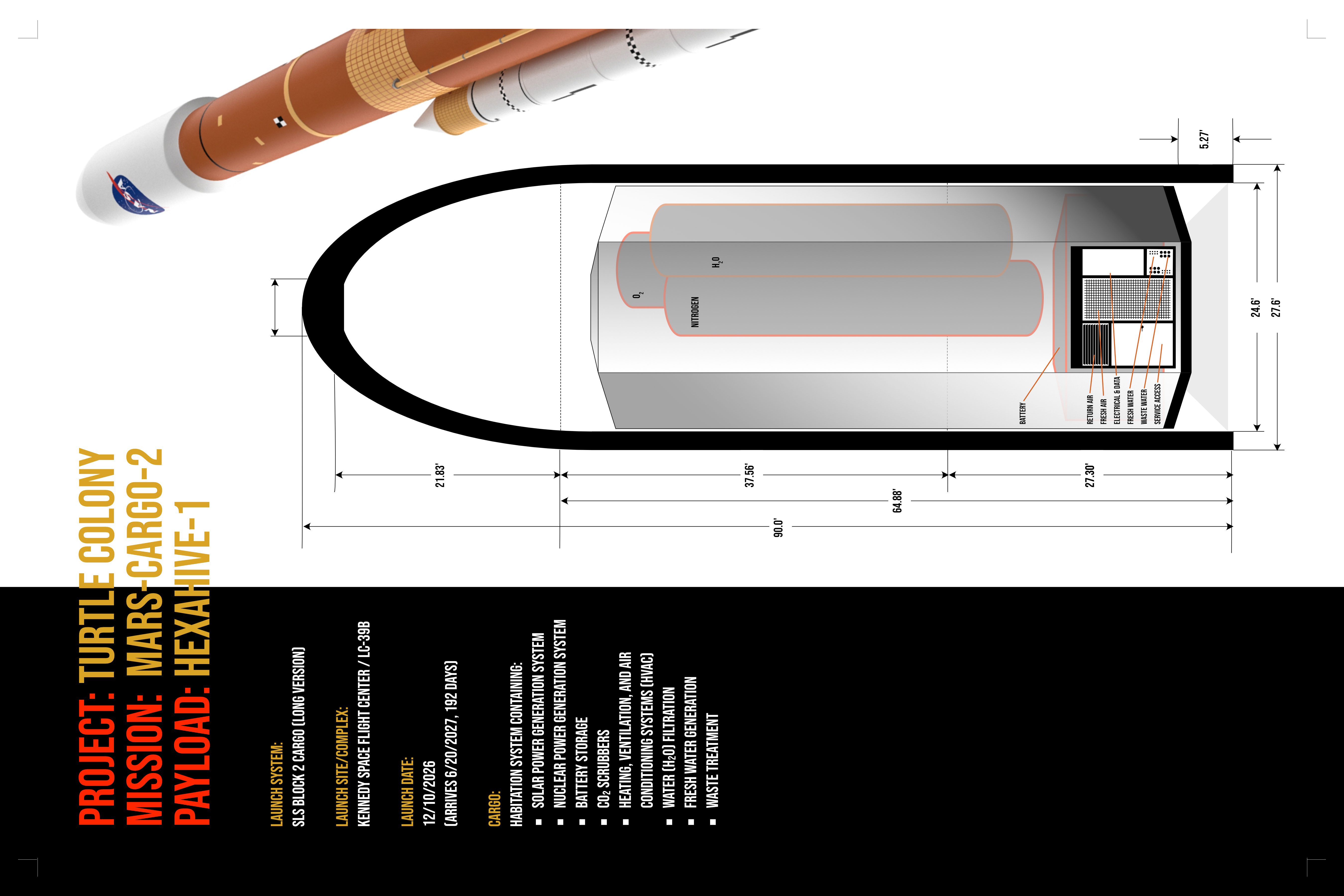 Each of the nine turtles has a different purpose, including a kitchen/dining room, a bathroom, two bedrooms (for six inhabitants), a storage room, an indoor, hydroponic garden, a mechanical room, and even a garage for the rovers and an airlock to the outside.